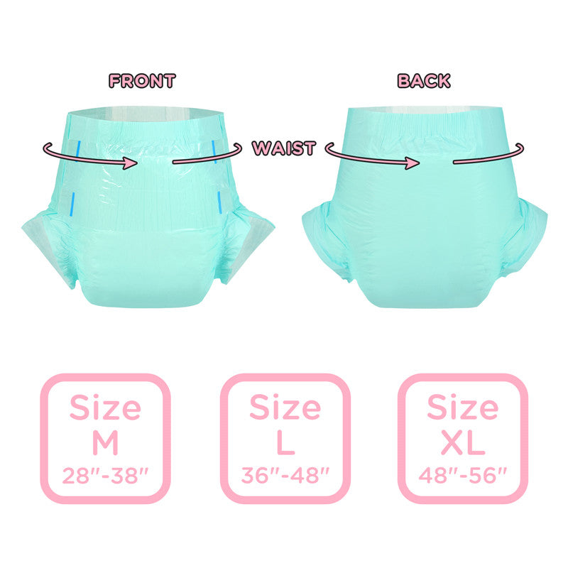 We are pleased to offer the Little For Big AB Dry Ultra absorbent diapers. The diapers are thick, fluffy and comparable to some of the thickest diapers on today’s market. Strong, green-colored plastic backing and ultra-soft cloth-like inside fluffy padding provides for comfort and security. The quick absorbency core works to keep sensitive skin dry. Inside the diaper, soft inner standing guards help prevent accidental leaks. Four strong adjustable tapes keep the diaper securely in place. The front landing panel allows the tapes to be refastened when necessary. Soft outer layer ensuring all-day comfort. The stretchy leg gathers ensure that all that extra thick padding fits comfortably between legs. The diaper features a classic look, with comfortable and secure fit, and high-performance materials. The high-capacity design prevents leaks, giving you an extra assurance that the diaper will keep you dry and comfortable during the day or night.